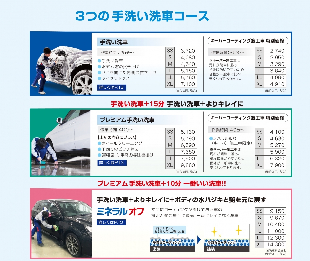 コーティング施工・手洗い洗車はもちろん、車検や軽整備などお車のことなら何でもご相談くださいませ。