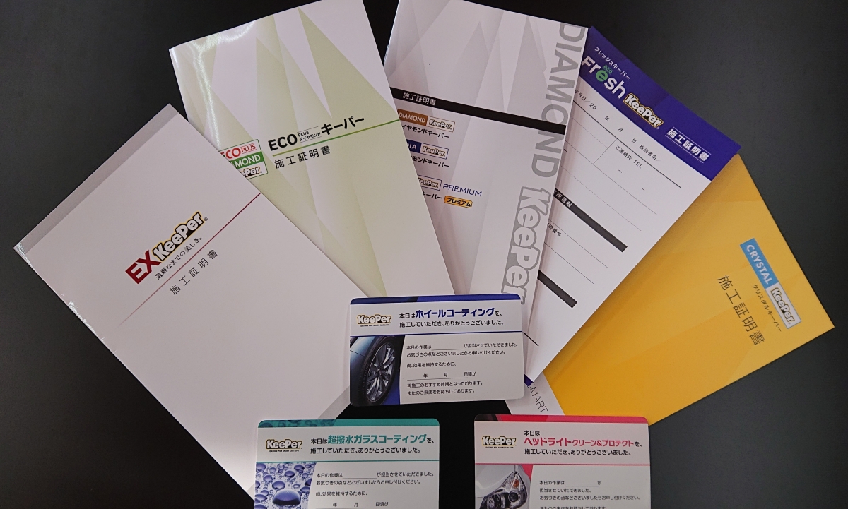 *キーパー施工車は、施工されていない一般車と比べ、汚れが簡単に落とせて大変洗いやすいため、価格がお安くなっております。受付時、施工証明書をご提示ください。他店でキーパー施工のお車もOK!施工証明書をご持参ください。(各キーパーコーティングの施工有効期限内のお車に限ります)