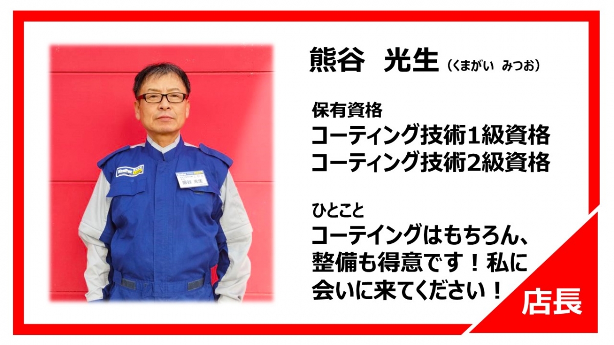 当店での作業は”経験豊富なコーティング技術者”が施工!