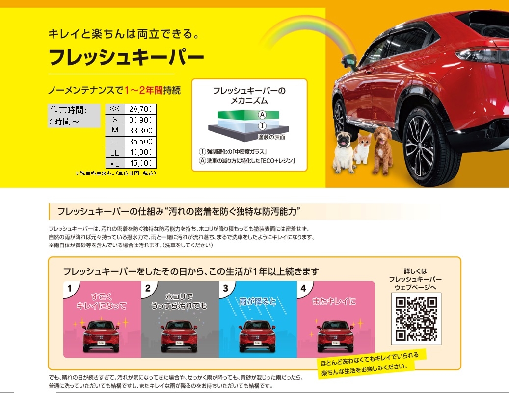 樹脂部が多い一部車種(ヤリスクロス・CH-R・CX-5・XV・ロッキー・キックス・ハスラーなど)や樹脂パーツの劣化具合により施工料金が異なります。¥12,200(税込)~