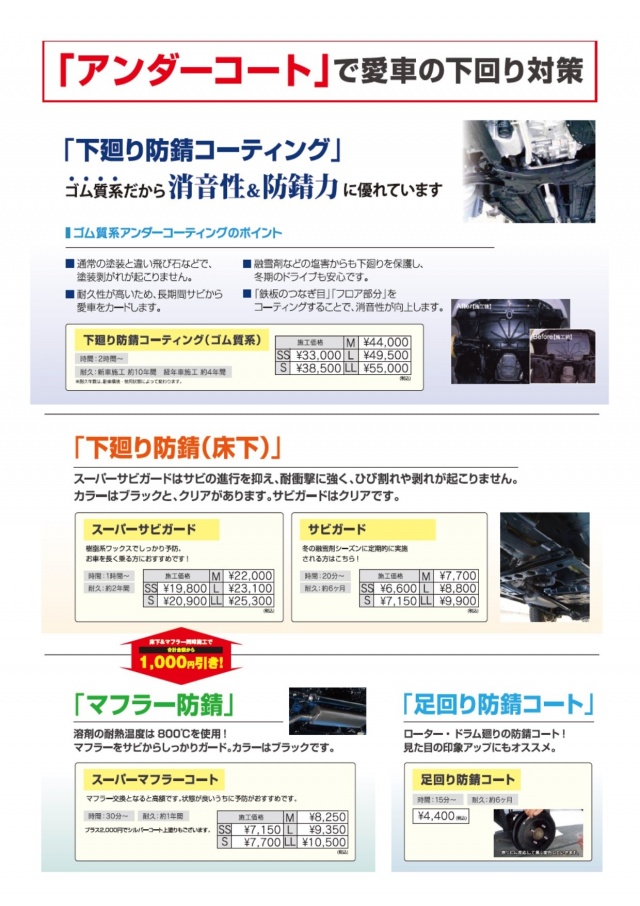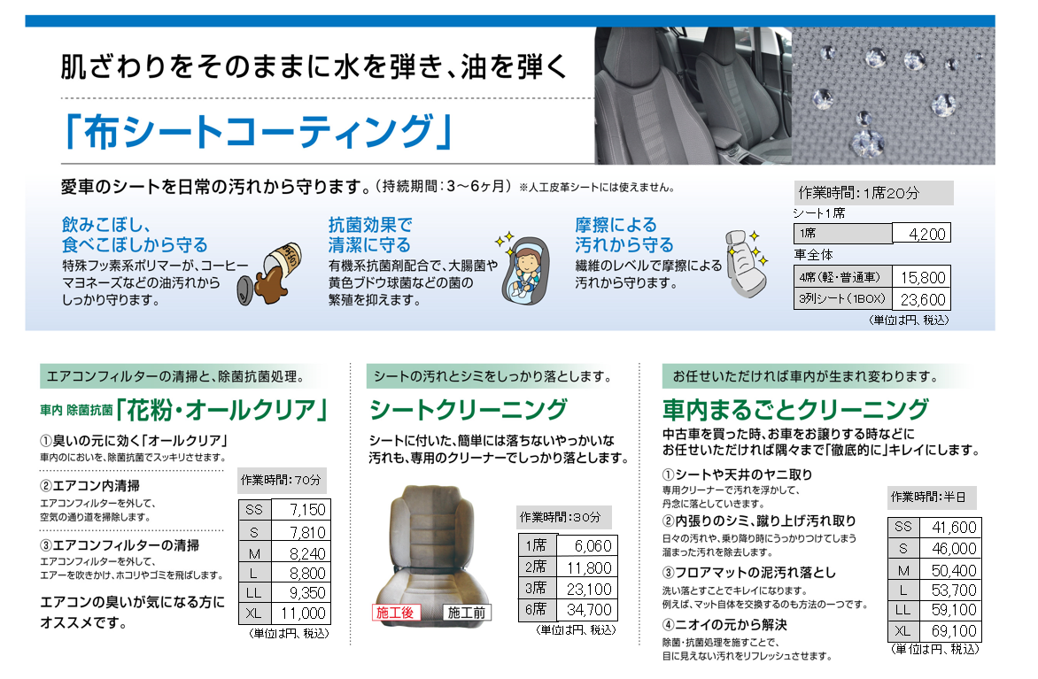 洗車やコーティング、タイヤや車検など、お車のことは当店へお任せください!