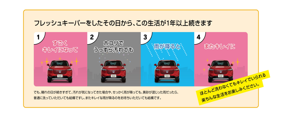特殊な防汚能力で自然の雨を味方にし、洗車回数を減らすことで