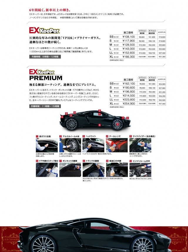 EX キーパーの圧倒的な艶を生む「VP326」の下に定着を良くするプライマーガラスを施工することで目に見えて、新車を超えた艶と美しさを実感できます。