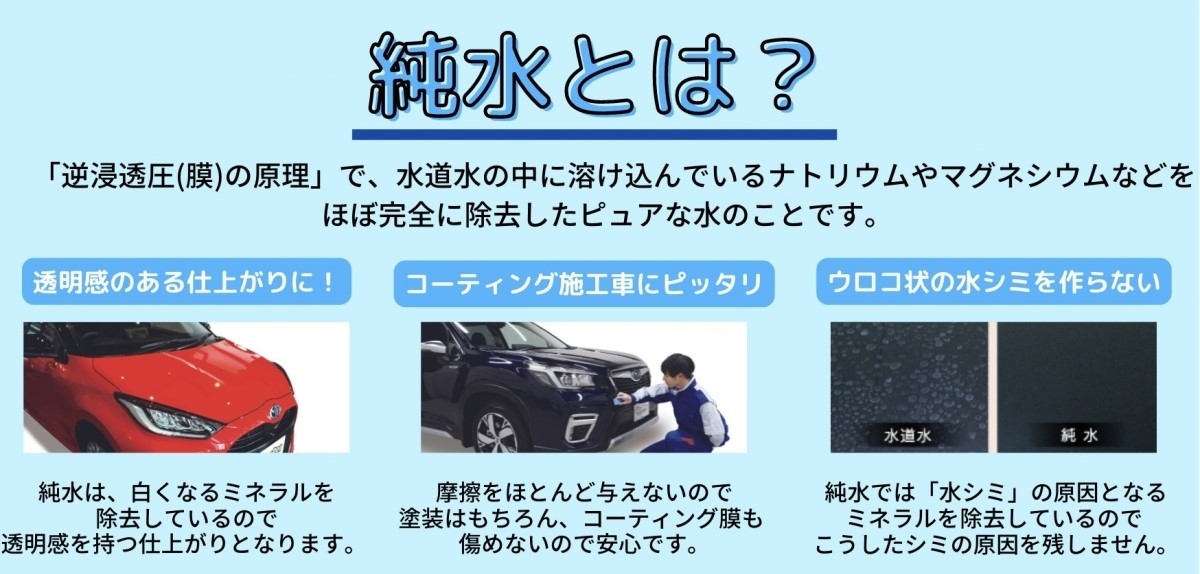 この度、純水を使用した手洗い洗車をはじめました!!