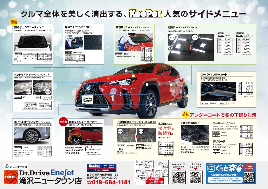 こんにちは!滝沢ニュータウン店の佐々木です!最近はめっきり冷え込み、寒さの厳しい日が増えてきましたね。そんな中でも休日にはお出かけすることはまだまだ多いかと思います。お出かけの際、ふと車の汚れが気にな...