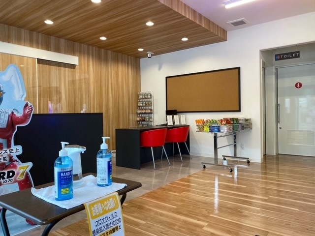 洗車やお車の整備中は、店内でゆっくりお待ちいただけます。