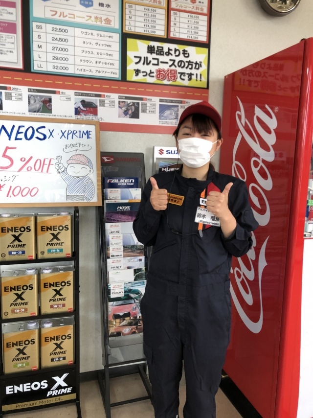 男の人に負けないくらい整備も頑張ります!お車でお困りの事ございましたら、お声がけください(^^)
