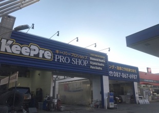 キーパーPRO SHOP看板が目印です。コーティングの施工台数が反映されるKeePer選手権では、数多くのお客様から支持され中国四国ブロックで常に上位の実績で、たくさんのコーティング施工をさせていただいております。