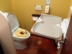 かがわこどもの駅 登録店でもあり、トイレにはこども用便座 オムツ替えベットを完備しています。