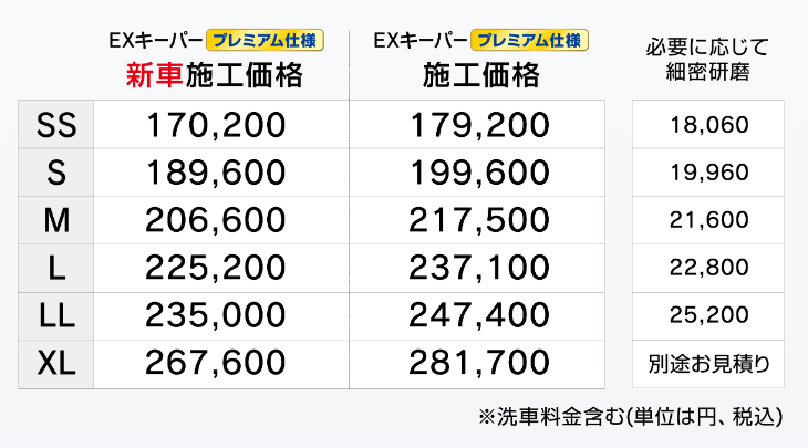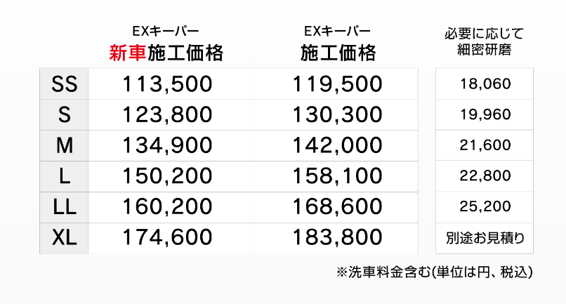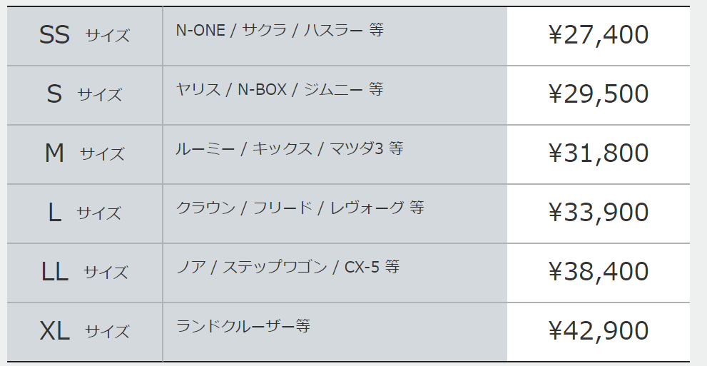 『車種サイズ一覧表』 ←詳しい施工料金はコチラをクリック!!
