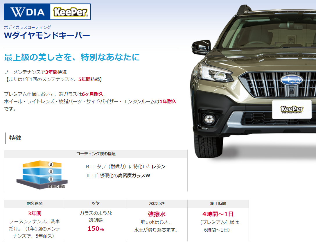3層コーティングのダブルダイヤキーパーは5年シリーズの人気商品。