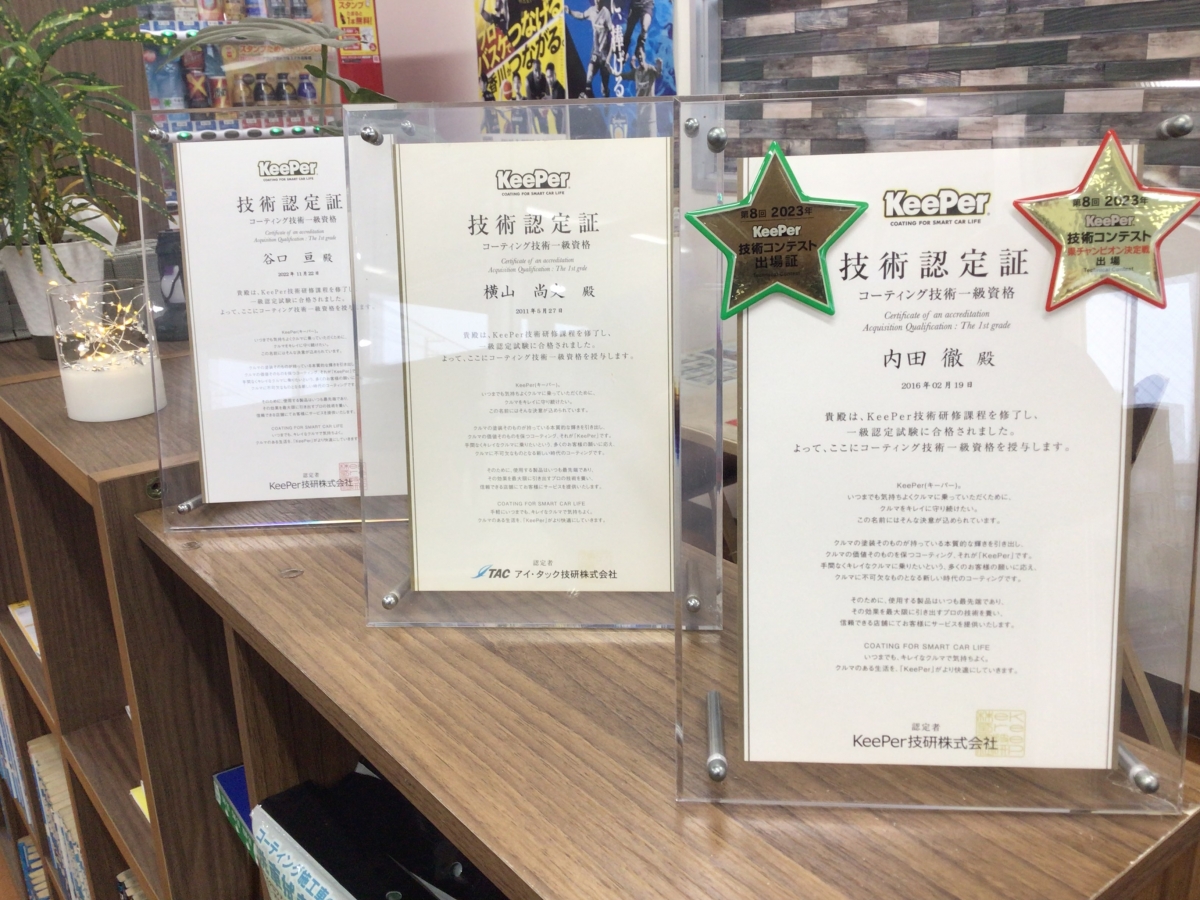 〇 コーティング作業はコーティング一級技術認定資格を所有したスタッフが施工致します。