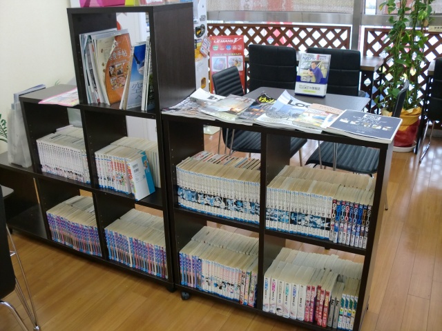 洗車中やコーティング施工中は店内でお待ちいただけますし、代車の無料貸し出しも可能です。メニュー表、マンガ、雑誌などたくさんあります。