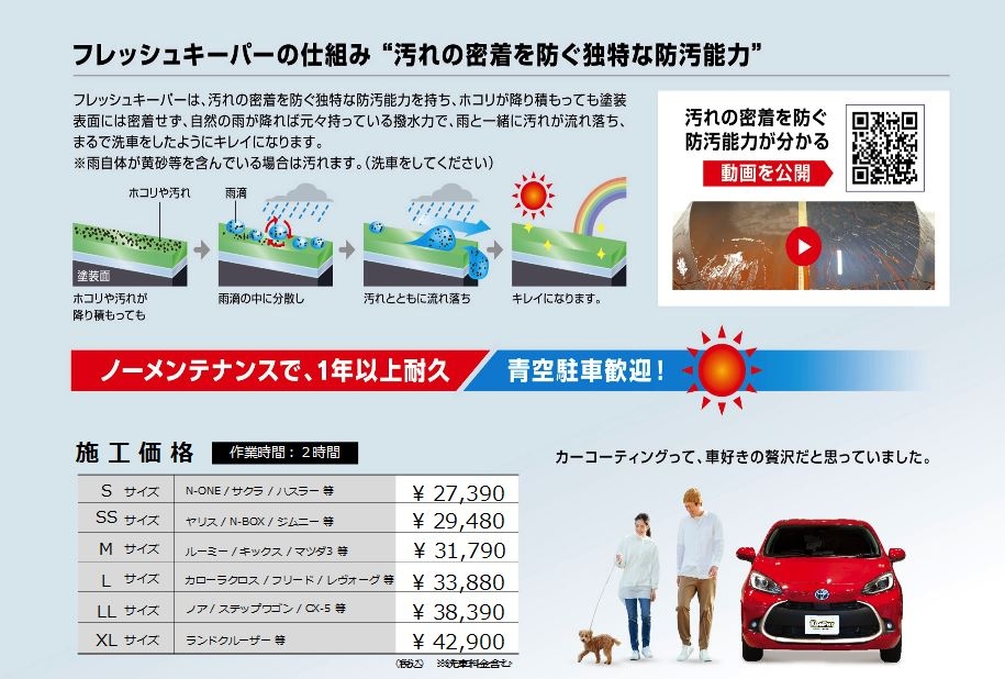 耐久期間 : 1年間(ノーメンテナンス、洗車だけで1年耐久)