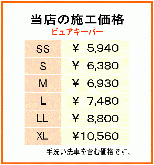 耐久期間 : 3ヶ月(3ヶ月毎の繰り返し施工で強くなる被膜)