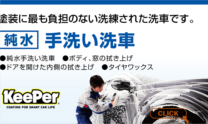当店の手洗い洗車はすべて純水仕上げを致します。