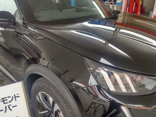 新車での施工です。塗装をしっかり守るダイヤモンドキーパーは、ノーメンテナンスで3年。年に1回のメンテナンスで5年持続します。