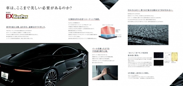 エコダイヤキーパーは、ダイヤモンドキーパーの「高密度ガラス被膜」に、独自な防護能力を持つ「ECO+レジン被膜」をプラスした2層構造のボディーガラスコーティングです。塗装面の艶を損ねる微細キズや凹凸を「高密度ガラス被膜」が埋めて平らにし、独自の深い艶を生むと同時に、「ECO+レジン被膜」の自然の雨が洗車になる「自浄効果」で、塗装面を徹底的に守り、洗車の数を減らしながらお車の美観を長く保ちます。 *雨自体が黄砂等を含んでいる場合汚れます。(洗車をしてください)