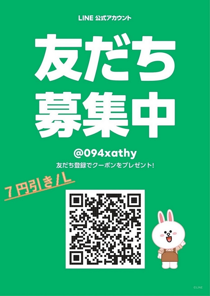 友達登録で初回7円/ℓ引きクーポン発行します!