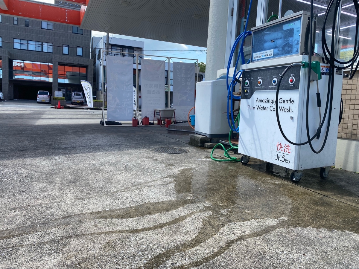 専用の手洗い洗車機を使用。純水という水を使用し仕上げることで、お車にも優しい洗車です。