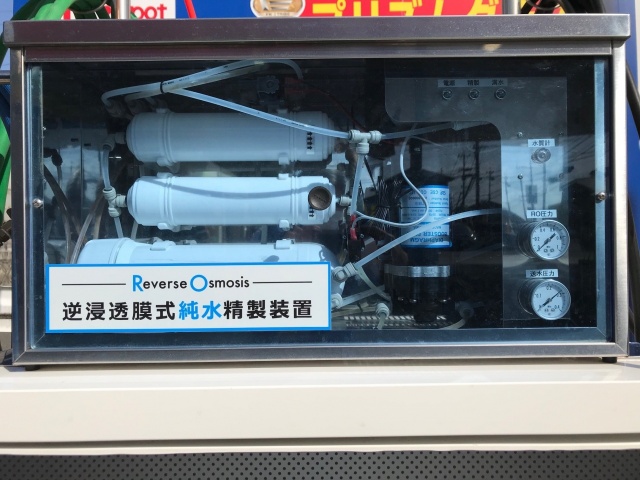 当店の洗車・コーティングは純水を使用しています。純水とは、水道水の中に溶け込んでいるナトリウムやマグネシウムなどをほぼ完全に除去したピュアな水です。