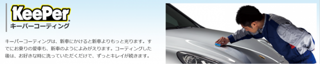 当店では、しっかりと塗装を守る『キーパーコーティング』をはじめ、コーティング車でも安心の『純水手洗い洗車』など、お車のキレイを追求しております。