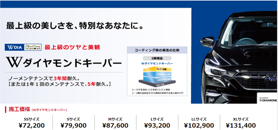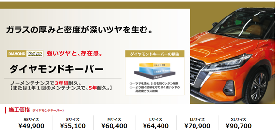 新車を購入された方、まだまだ今の愛車を乗り続ける予定の方、深い艶を求める方には「軽研磨」のついたダイヤモンドキーパーをオススメします!