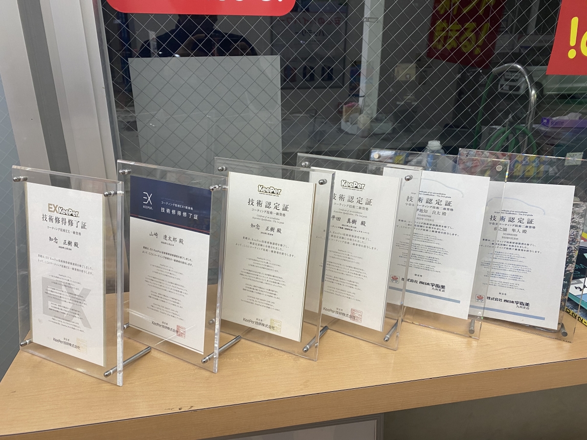 当店にはEXキーパーコーティング技術1級者3名、コーティング技術2級者1名在籍しております!
