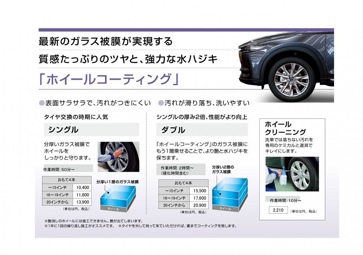窓ガラス・ホイールといった細部までコーティングのオトクなメニュー‼