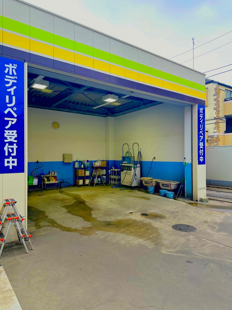 当店では屋根付きブースも完備!しっかり仕上げさせて頂きます。