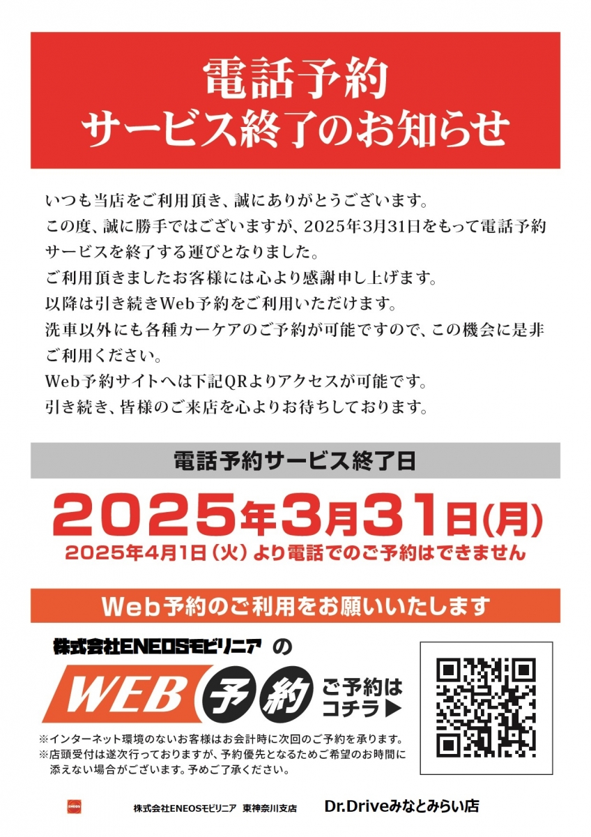 A:当日のご予約でも大歓迎です。 ご予定の時間での作業を、一度店舗にご相談下さい。 ご予約・お問い合わせはTEL:045-683-1001