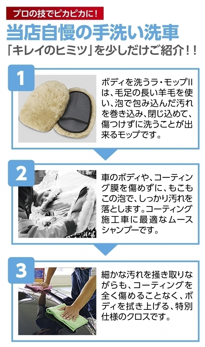 真心を込めて施工させて頂きます!お客様の愛車に合った洗車プランをご提案させていただきますので私どもにお任せください。