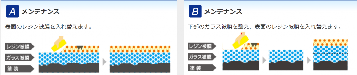 ・屈折率の違う異質の二層の透明被膜で凸凹を埋めて塗装表面を平滑化すると同時に、別次元のキレイさを作り出します