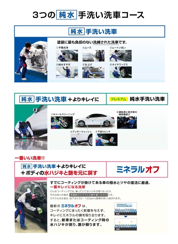 純水を使用した手洗い洗車はもちろん、その他サイドメニューのご用意もあります(*'▽')