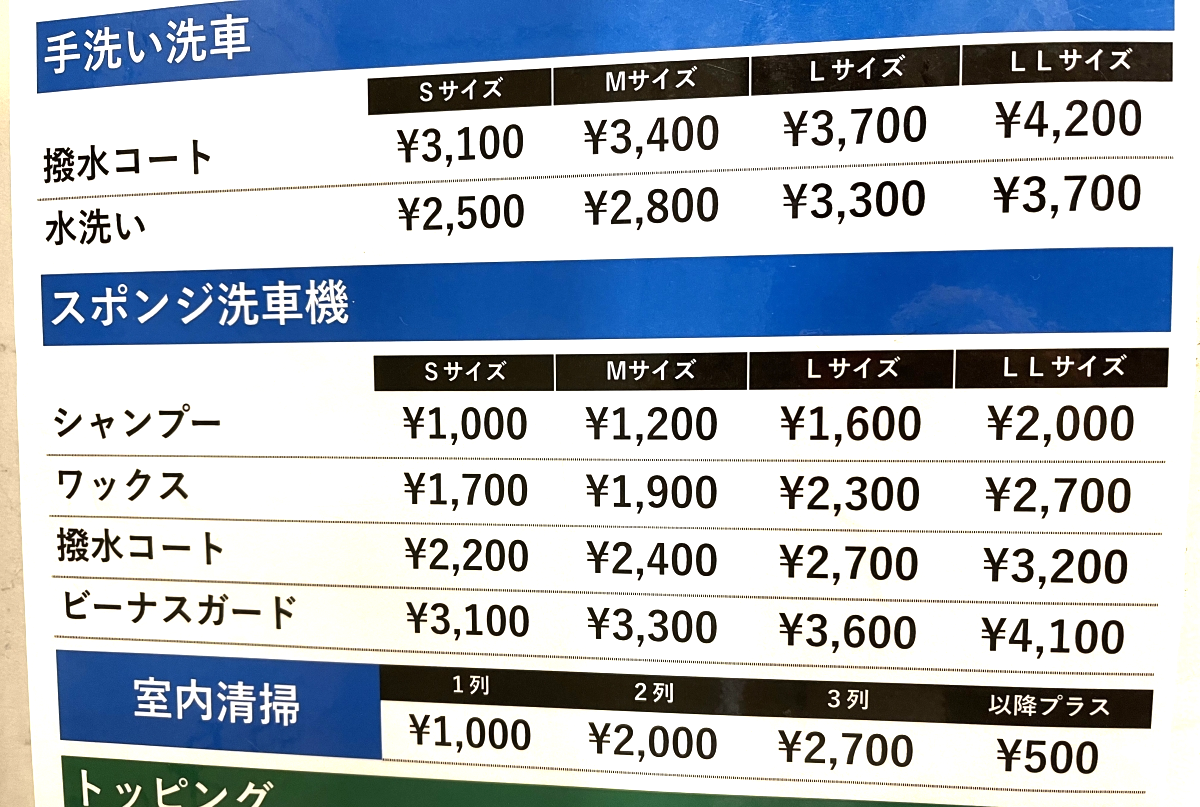 車の大きさ・コース等によって金額、時間が異なりますので、御不明な点はスタッフまでお気軽にお尋ねください。