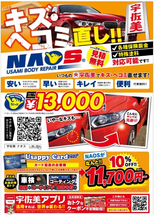 気になるキズを直すなら宇佐美ボディリペア『NAOS』がおすすめ!