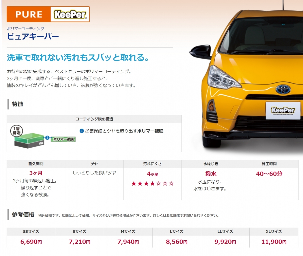 「ピュアキーパー」(3か月耐久ポリマーコーティング)