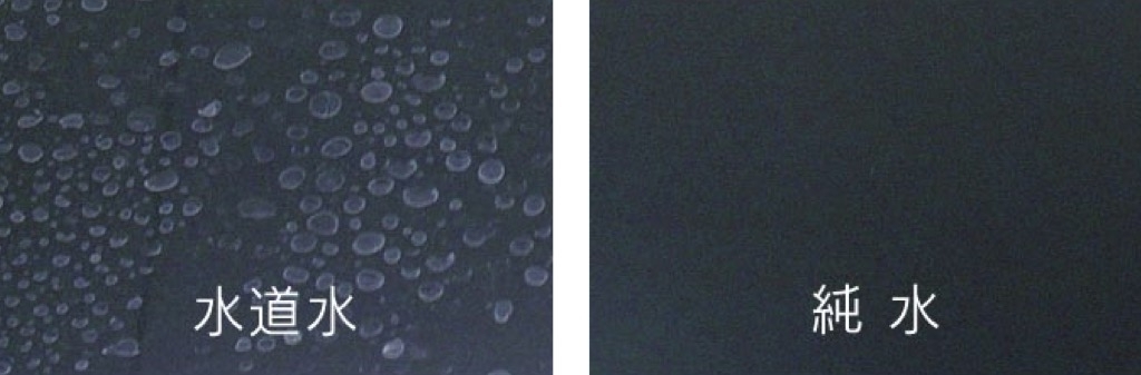 純水では、「水シミ」となるミネラルを除去しているので、シミの原因を残しません