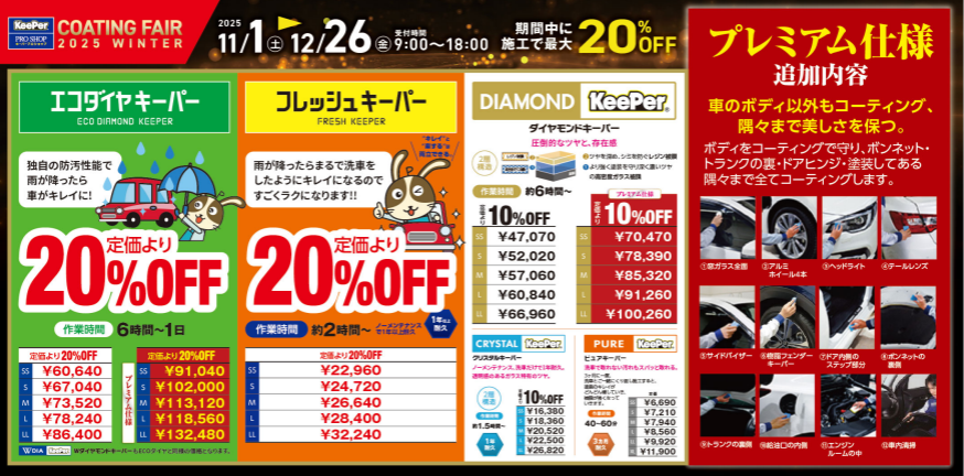その他取扱い商品: 手洗い洗車 純粋手洗い洗車 keeper キーパー キーパーコーティング 水垢落とし 鉄粉除去 軽研磨 鏡面研磨 メンテナンス 代車 板金塗装 キズ ヘコミ バンパー クイック板金 安い 虫取り
