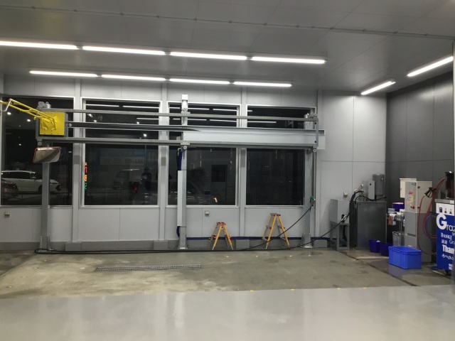 内部にはゾーンを仕切るビニールカーテンも装備し、抜群の施工環境です
