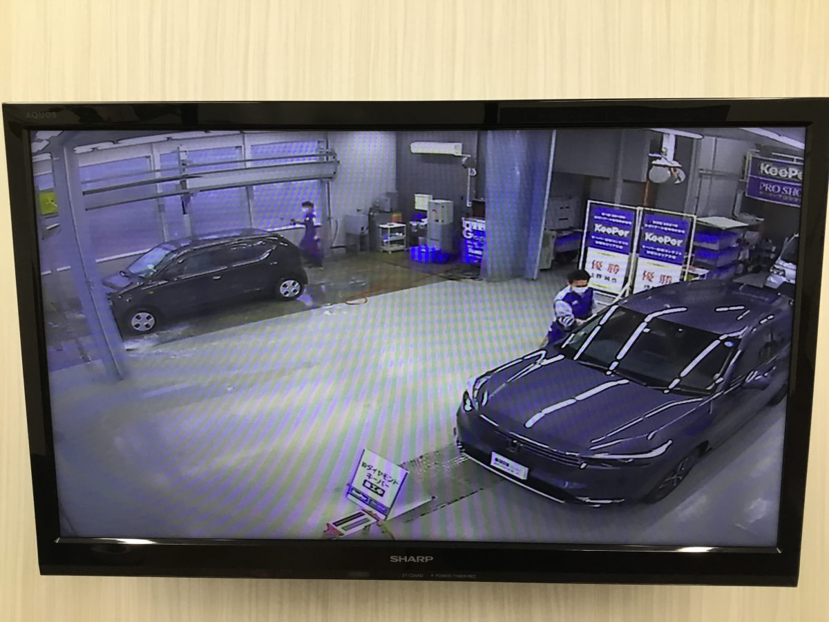 ゲストルーム内のモニターからコーティング施工をご覧いただけます