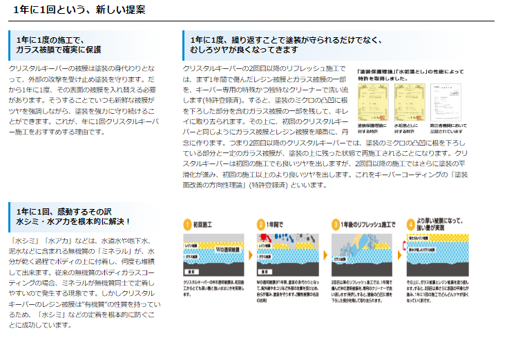 クリスタルキーパー、フレッシュキーパー、ダイヤモンドキーパー、Wダイヤモンドキーパー、エコダイヤキーパー、EXキーパーを当店にて施工させて頂いたお客様に