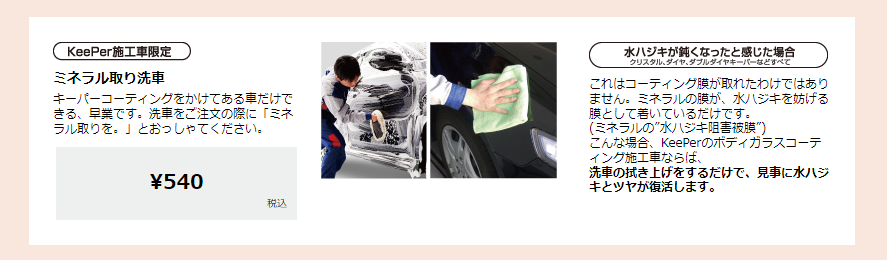 コーティングした後は、お好きな時に洗っていただくだけで、ずっとキレイが続きます。