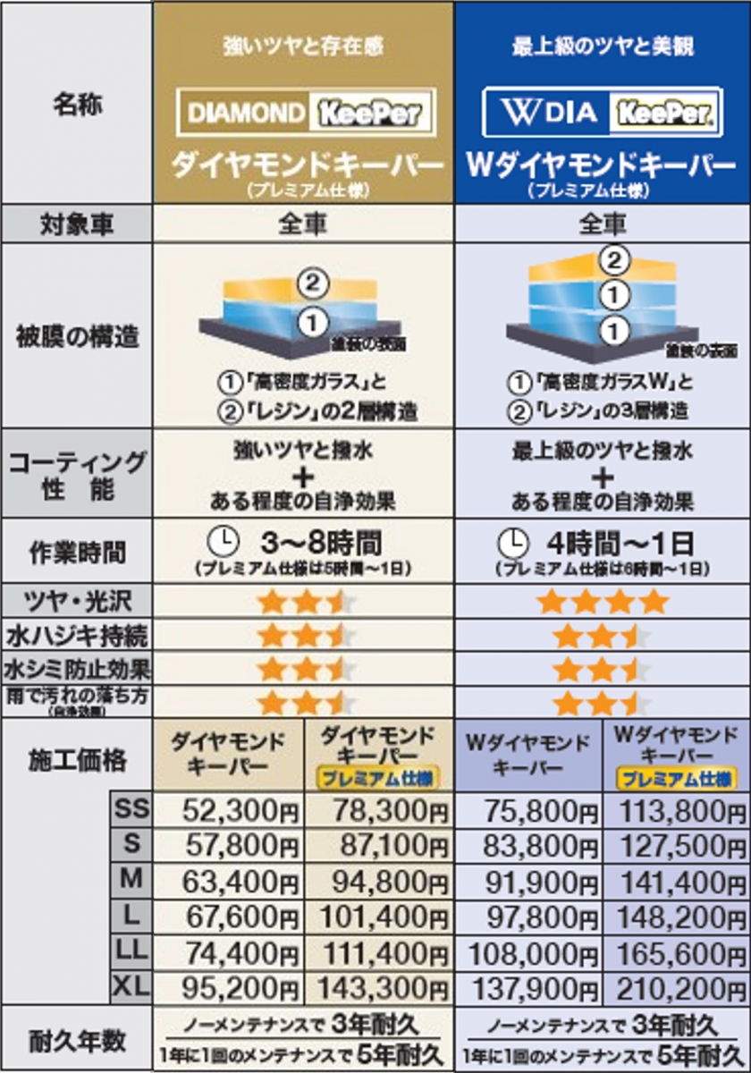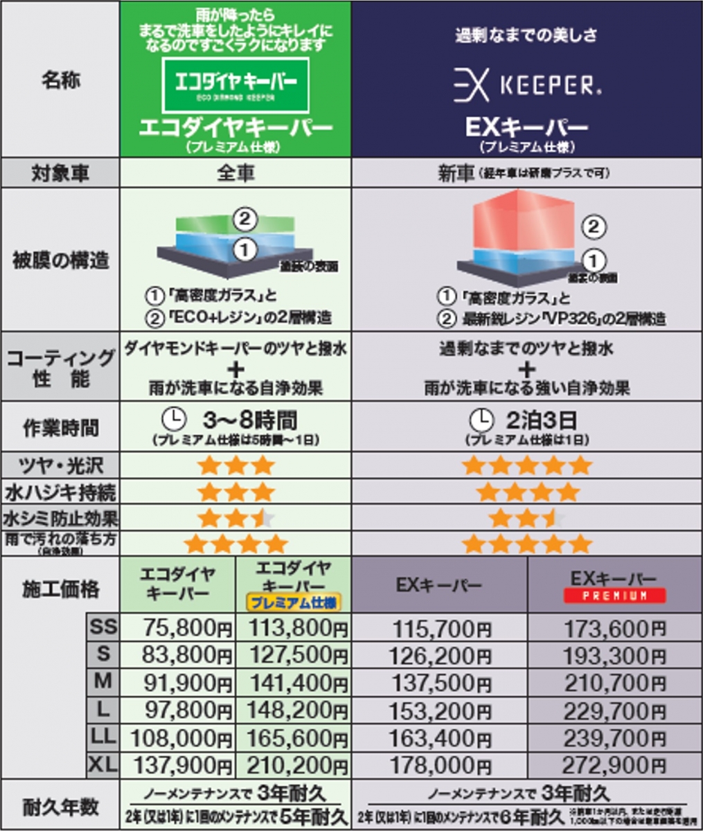 誠に勝手ではございますが、令和7年4月よりコーティング等のサービスの価格変更をさせていただきます。