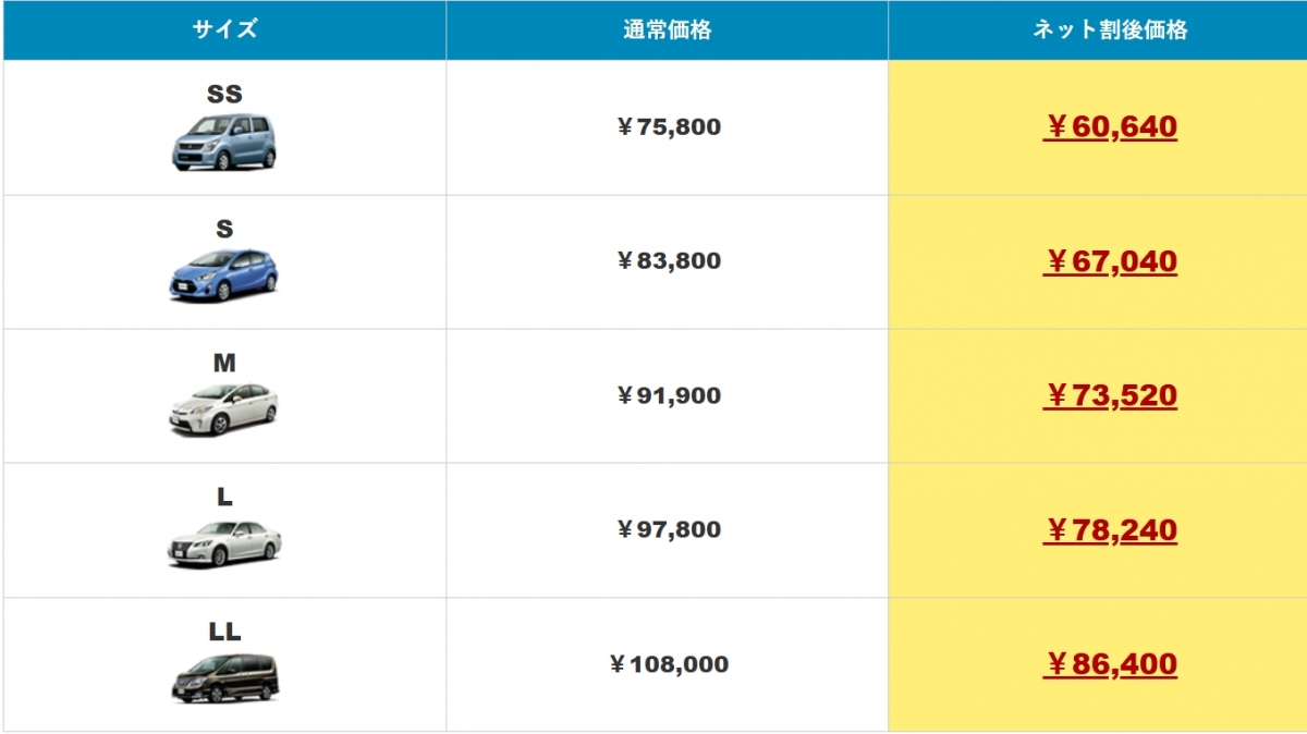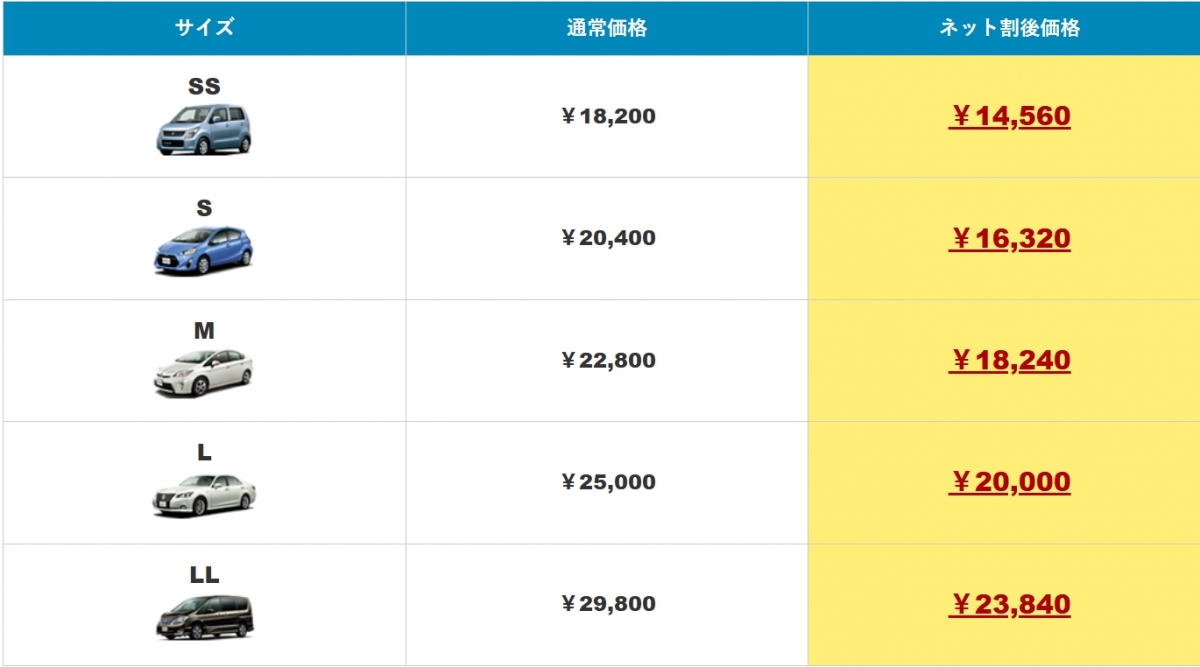 ※お車のサイズによって料金が異なります。お気軽にご相談ください。