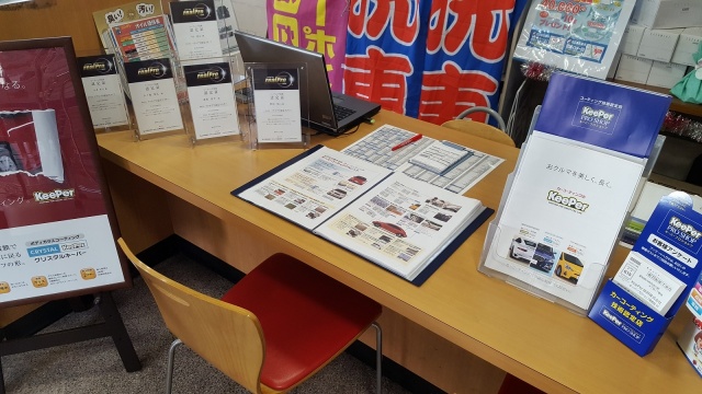 洗車やコーティングは店内でお伺いします。気になる汚れなんでもご相談ください。