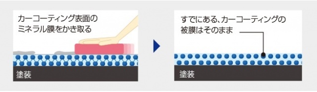 キーパーが新発明した「コーティングの被膜を一切削らず、ミネラル膜だけをキレイにかき取る」技術。