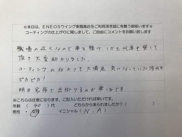 Q:コーティングの作業の間、代車は用意してもらえますか?