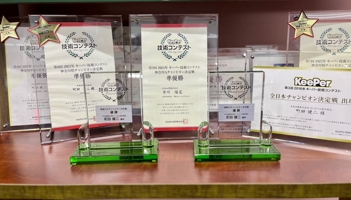 - 国家自動車整備士やコーティング技術資格者の在籍はもちろんのこと、キーパーコーティング技術を競う「キーパー技術コンテスト」の神奈川県チャンピオンも在籍しております。