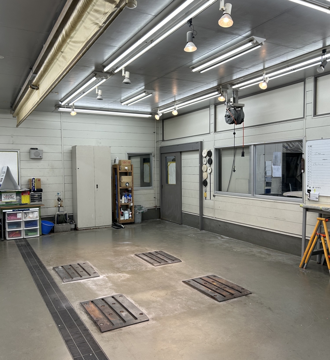 コーティングブースも完備です、確りとした明るさのもと、お客様の車の艶を確認できます。
